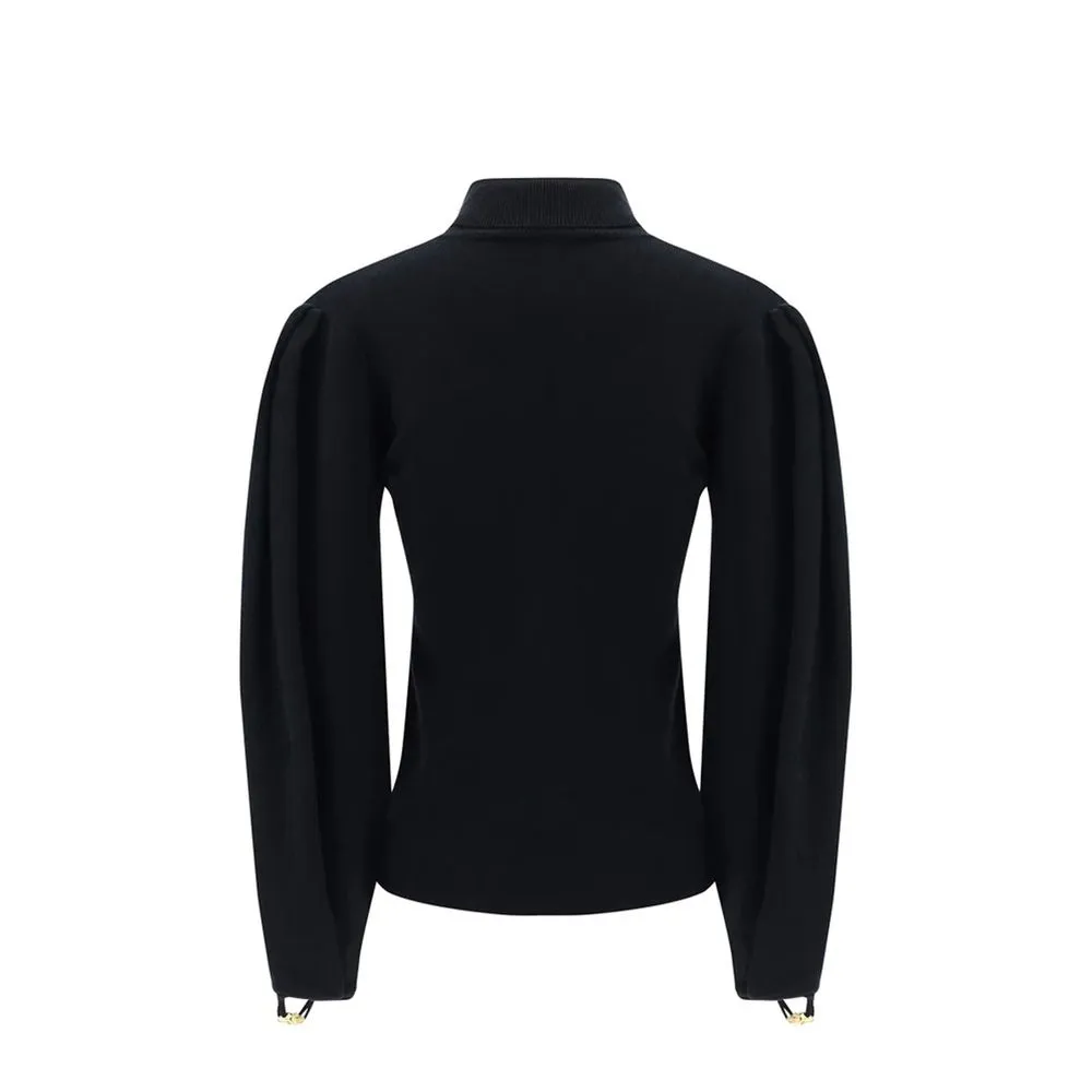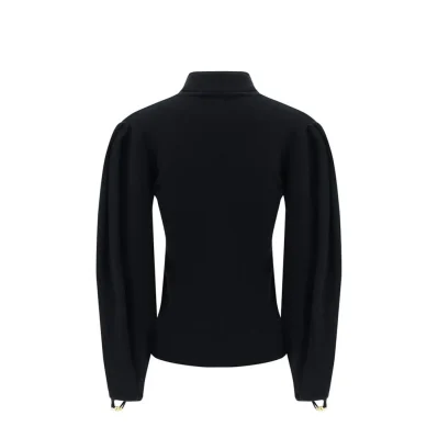 – Composition: 12% Polyamide 88% Wool – Long sleeves – Ribbed trims – Cut-out detail – Hand wash – High neck – Balloon sleeves with split – Mammered gold metal detail – Open-sleeves – Made in China – Gender: WOMEN –