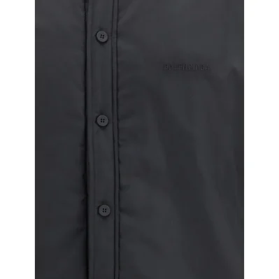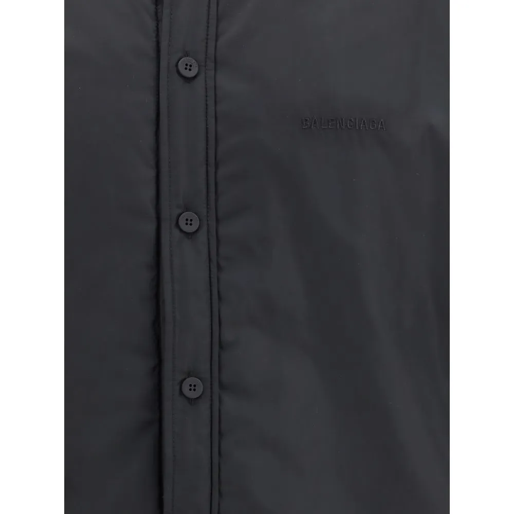 The padded Jacket by Balenciaga is crafted from high-quality polyester, designed to provide warmth and comfort while maintaining a sleek aesthetic. It features a pointed collar, front button closure, and buttoned cuffs. The tonal embroidered Balenciaga logo on the chest adds a subtle signature touch. Fully lined for a smooth fit and refined finish, this piece embodies a modern urban style with effortless sophistication.