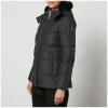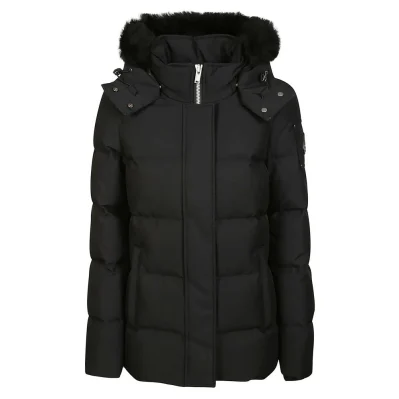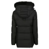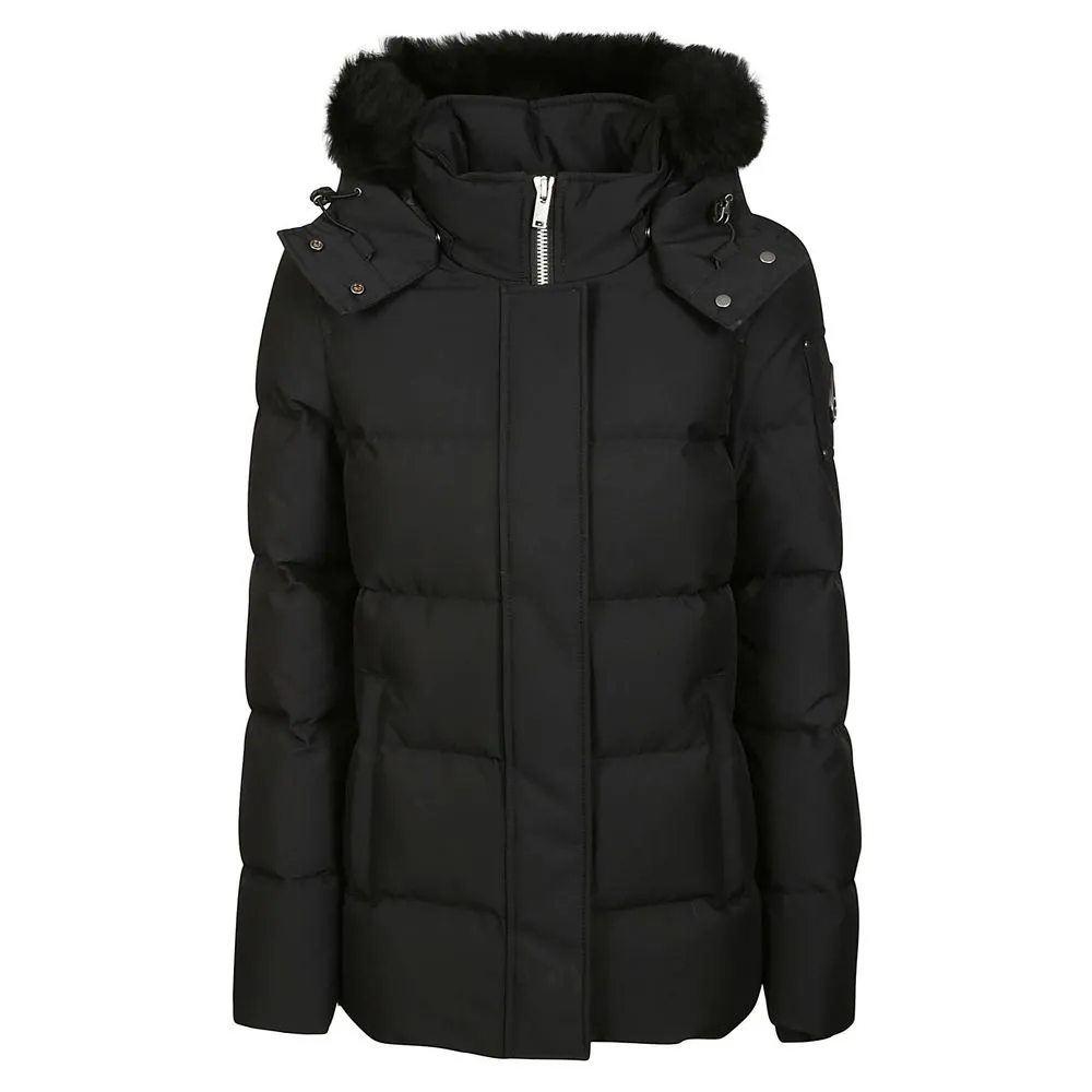 Moose Knuckles jacket with 80/20 goose down filling, the garment features hardware finishes such as double-slider zipper front closure with snaps, side vents and invisible zipper pockets. Warm hood with removable faux fur, iconic logo on sleeve in 3D metal. Perfect for extreme cold weather.