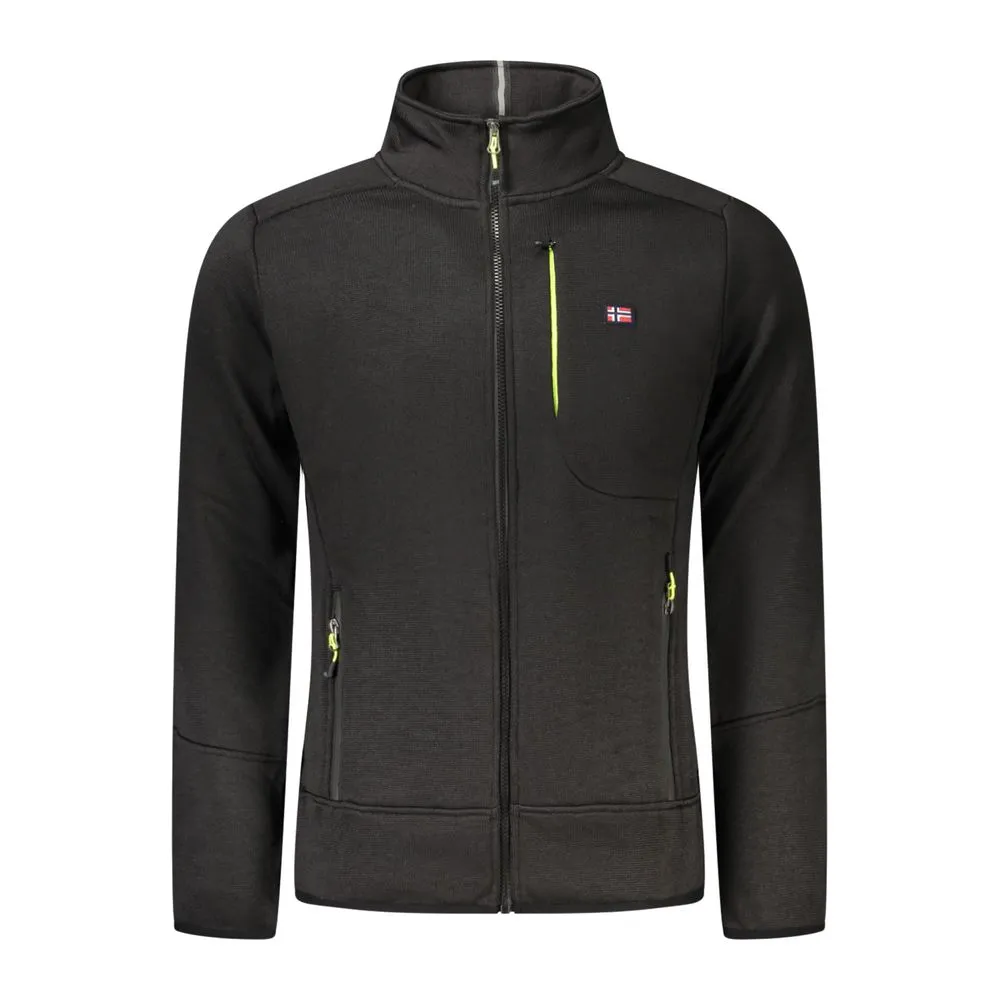 Experience the epitome of urban sophistication with Norway 1963’s black long-sleeved sweatshirt. This sleek pullover boasts both functionality and fashion, featuring two convenient pockets along with an additional zippered compartment for secure storage. The contrasting details and bold zipper provide a striking visual edge, while the signature applique logo lends a touch of brand prestige. Crafted from high-quality polyester, this garment is a testament to durable style, perfect for fashion-forward individuals.