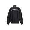 Balenciaga’s Oversized Windbreaker Jacket is a garment with a bold, sporty aesthetic made from durable technical fabric. Featuring contrasting Balenciaga embroidery on the chest and back, it has a high collar, concealed front zipper closure and two zipper pockets on the front. Gathered elastic cuffs and hem ensure a comfortable fit, while the mesh lining ensures breathability and lightness.