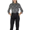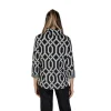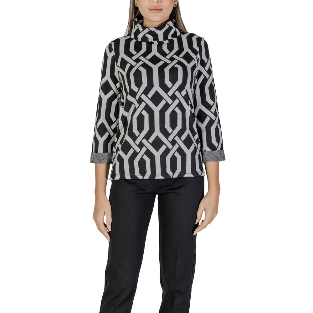 The Street One EOS women’s sweater with scarf collar and jacquard pattern is the perfect choice for those seeking both style and comfort in knitwear. Made from a blend of 63% polyester, 34% viscose, and 3% elastane/lycra, it offers a comfortable fit and pleasant stretch that moves with your body. The geometric jacquard design adds a modern and sophisticated touch, while the cozy scarf collar provides both style and practicality. Long sleeves with turned-up cuffs and a slightly fitted cut flatter the silhouette, making this sweater ideal for both casual and more refined outfits. Perfect for the autumn-winter season, it is a versatile piece to wear at the office, during leisure time, or for special occasions.