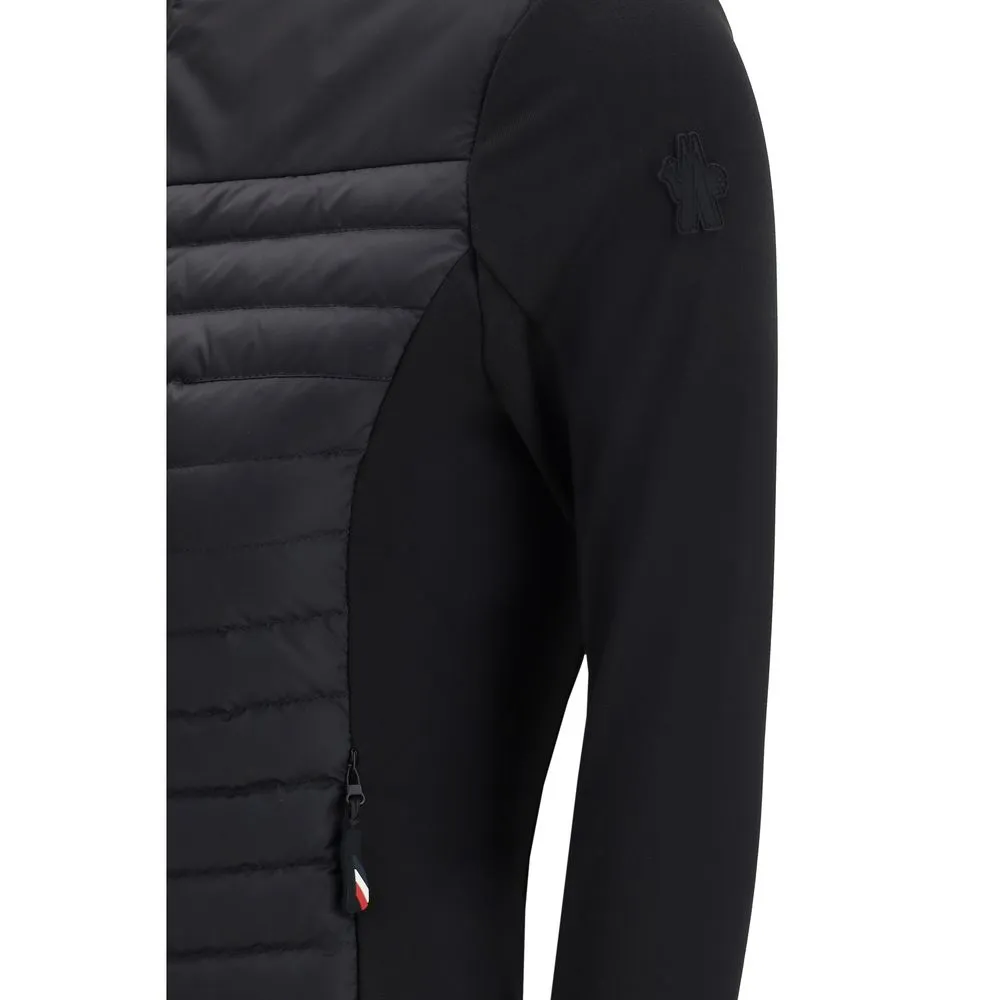 The padded Polartec zip Sweatshirt by Moncler Grenoble blends technical innovation with comfort. Featuring a padded nylon léger front and a waterproof yoke lined in nylon, it ensures warmth and protection. The high collar, water-repellent zip closure, and zip pockets offer functionality, while stretch jersey cuffs provide flexibility. Finished with dual logo detailing and a silicone logo patch for a refined performance look.