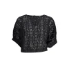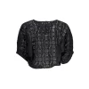 Indulge in the bold artistry of Desigual with this striking black blouse designed to captivate and elevate your wardrobe. The short batwing sleeves create a fluid silhouette, while the elastic waistband cinches for a flattering fit. Contrasting details and the iconic Desigual logo add a touch of irreverent charm, making it a masterpiece of contemporary fashion. Perfect for those who dare to stand out from the crowd.