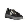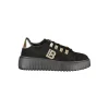 Black Polyester Women Sneaker with Gold Detail and Rhinestone Accents