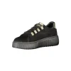 Step into the spotlight with Laura Biagiotti’s daring take on the sneaker trend. Dominating with a bold black hue, these kicks are anything but ordinary with their dazzling rhinestone appliqués and striking gold details. Perched atop a confident 4 cm platform, they whisper of luxury with every step. Perfect for those who refuse to blend in, these shoes demand attention and deliver nothing short of a fashion statement.