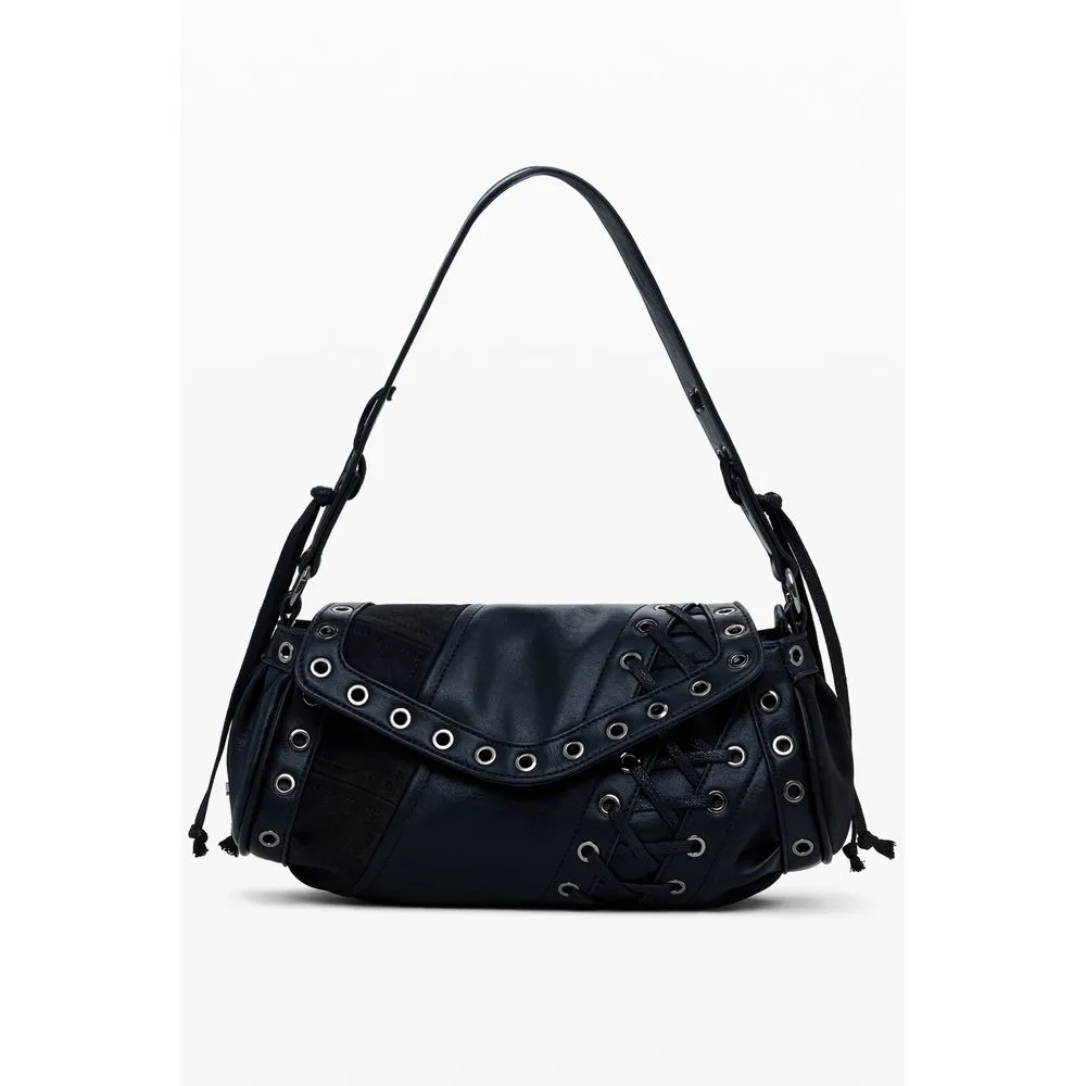 Make a bold statement with the Desigual Zarauz Tango Patch Bag – a masterpiece that fuses functionality with a flair for the dramatic. This black bag is your go-to accessory, designed to turn heads with its removable shoulder handle and adjustable strap for versatile carrying options. Stow your essentials in the secure internal pocket, while the zip and magnet closure ensures everything stays in place. Contrasting details and the iconic Desigual logo add that trendy touch to complete your chic ensemble.