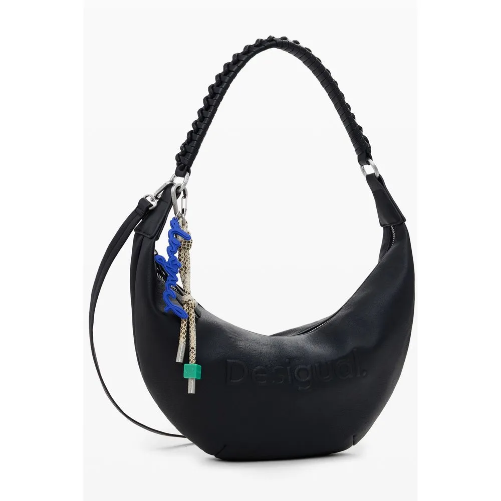 Indulge in the art of statement accessorizing with the ‘HALF LOGO ZANTE BAG’ by Desigual. Exude confidence as you carry this chic black masterpiece, designed with a unique relief print logo that shouts individuality. Convenience meets style – it comes equipped with a removable handle and two adjustable straps to switch effortlessly from shoulder to crossbody. Conquer your day with the practicality of the internal pocket and secure zip closure, all while making a bold fashion declaration.