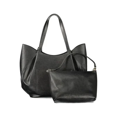 Elevate your arm candy game with the chic Amorette Bag from Guess Jeans. This sophisticated tote boasts a sleek black polyethylene construction, offering both style and durability. With two shoulder handles for classic carry and an additional removable internal pouch complete with its own handle, you’re ready for any occasion. An internal pocket keeps your essentials organized, while protective feet ensure your bag stays pristine. Adorned with the bold Guess logo, this handbag is the epitome of fashionable functionality.