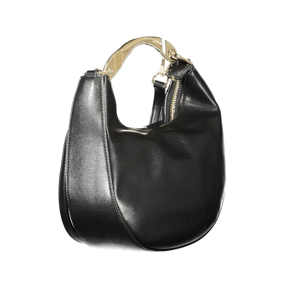 Indulge in the epitome of sophistication with Twinset’s sleek Hobo Bag. A true emblem of versatility, featuring a striking metal handle and a removable shoulder strap to suit your style and convenience. Inside, a secure zip closure opens to reveal a practical internal pocket alongside a dedicated card pocket, perfect for organizing your essentials. Crafted from premium polyethylene, this black beauty exudes timeless elegance with its unmistakable logo detail, promising to elevate your accessory arsenal.