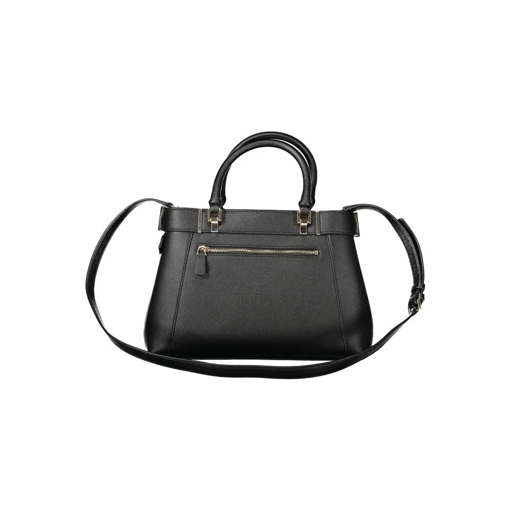 Elevate your accessory game with the Guess Jeans ANADELA BAG, a symphony of sophistication and versatility. Craft your look around its sleek black polyethylene silhouette that promises durability and style. Swing it by the dual handles or drape it across with the adjustable and removable shoulder strap for a hands-free moment. Organizational ease awaits with its ample compartments, including a secure zip closure central pocket. Signature Guess Jeans logo detailing and protective feet add that extra touch of luxury. Make a bold statement with this trendy must-have!