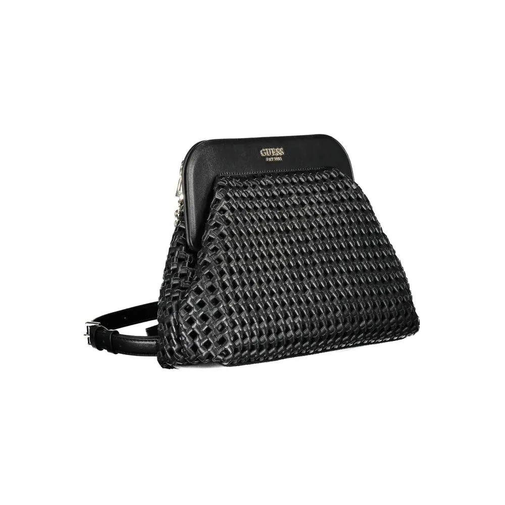 Infuse your everyday style with a touch of sophistication with this Guess Jeans statement handbag. Its sleek black hue and contrasting details create a bold, yet effortlessly chic look that demands attention. Crafted to carry your essentials with elegance, this purse features an adjustable and removable shoulder strap, allowing for versatile wear. An internal pocket paired with designated spaces for cards ensure organization is at its peak, while the magnetic closure secures your belongings with a satisfying click. Emblazoned with the iconic Guess logo, it’s more than an accessory—it’s a fashion statement.