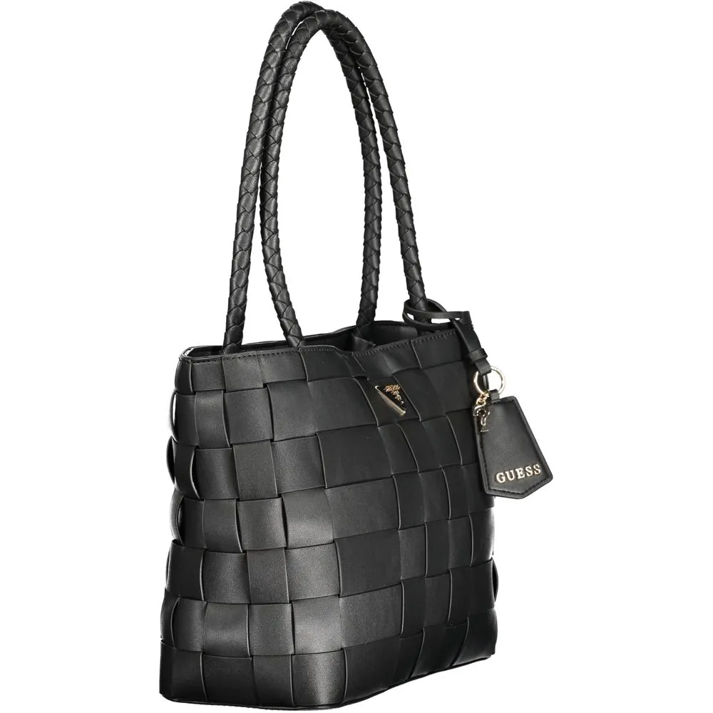 Unleash your inner fashionista with the Guess Jeans Maylee Bag—a statement piece where functionality meets high-end style. This chic handbag features two spacious compartments, a central pocket for your essentials, and an additional internal pocket to store your valuables securely. Designed with practicality in mind, it offers internal document spaces and is protected with both zip and automatic closures. The subtle contrasting details add an edge to its sleek black polyethylene silhouette, while the protective feet ensure your bag stays pristine. Adorned with the iconic Guess logo, it’s not just a bag—it’s a bold statement!