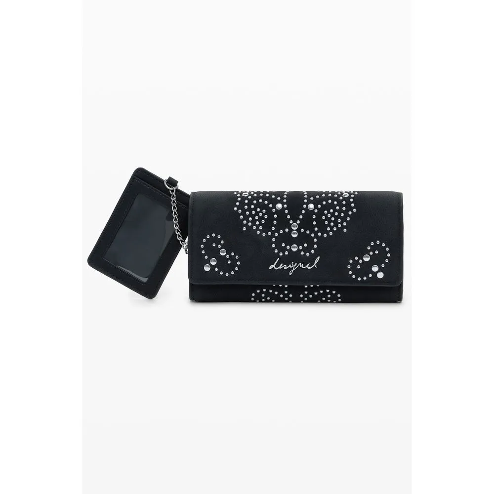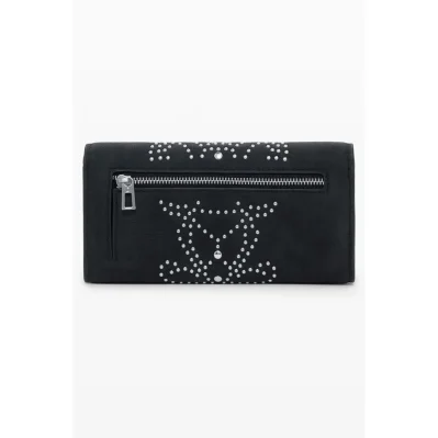 Unveil the essence of audacious sophistication with the Desigual MARIONA POKER FACE WALLET. A seamless blend of functionality and edgy aesthetics, this wallet boasts a decadent black hue complemented by striking studs and the iconic Desigual logo. Secure your essentials with the zip and snap closure and stay organized with 5 compartments including a coin purse, double card spaces, and a clever removable card holder. Step outside with this statement accessory and let it echo your bold and trendy spirit.