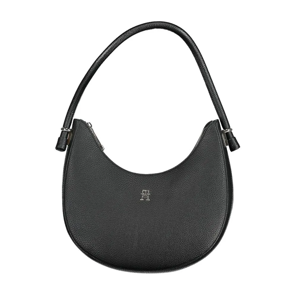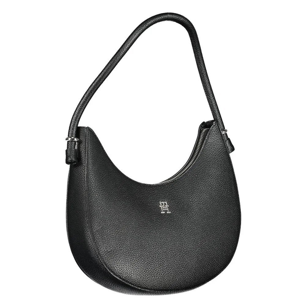 Elevate your accessory game with the TOMMY HILFIGER Adjustable Shoulder Bag. This chic black bag boasts sleek contrast details and a secure snap closure, perfect for the fashion-forward individual on the go. Its practical design features two internal pockets to keep your essentials organized. Crafted from premium polyurethane for durability and a leather-like finish, this bag adds a touch of class to any outfit.