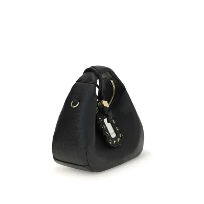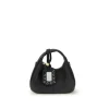 Hobo mini Handbag by Ganni is a compact and modern accessory made with grainy texture. Featuring a top handle and an adjustable and removable shoulder strap, it combines style and practicality. A gold-tone GANNI butterfly logo decorates the front, while the back features an embossed logo. The zipper closure protects a single compartment with an interior patch pocket. Engraved metal nuts and a mirrored label complete the design.