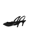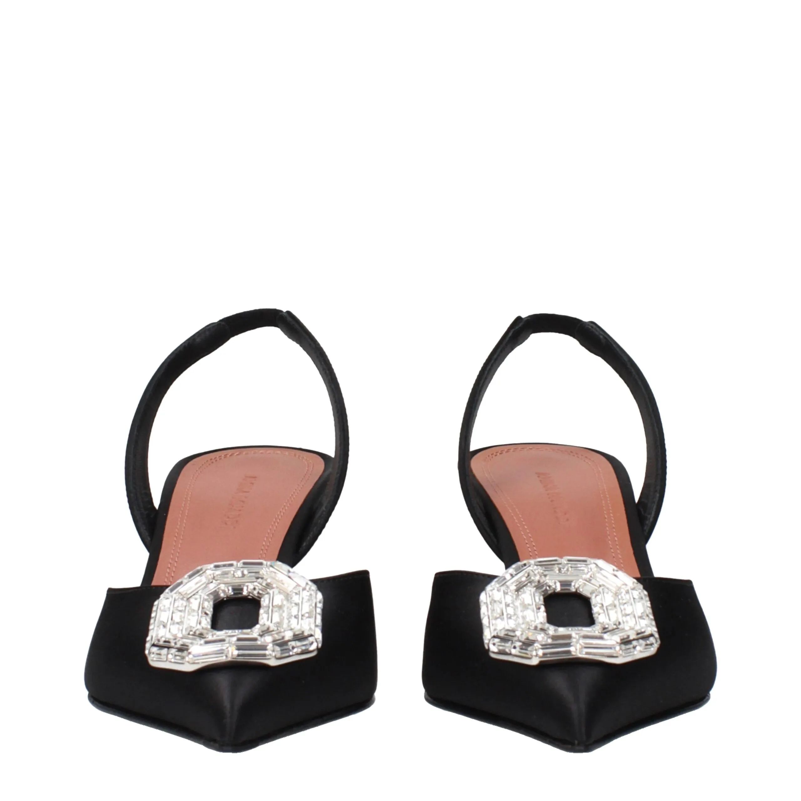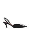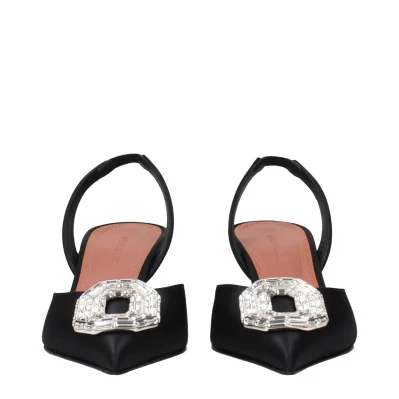 The product with MPN CAMELIASLING60SATINBLACK and code F84589 satin in black is a sandals designed by Amina Muaddi. It has features like front detail, rhinestone.