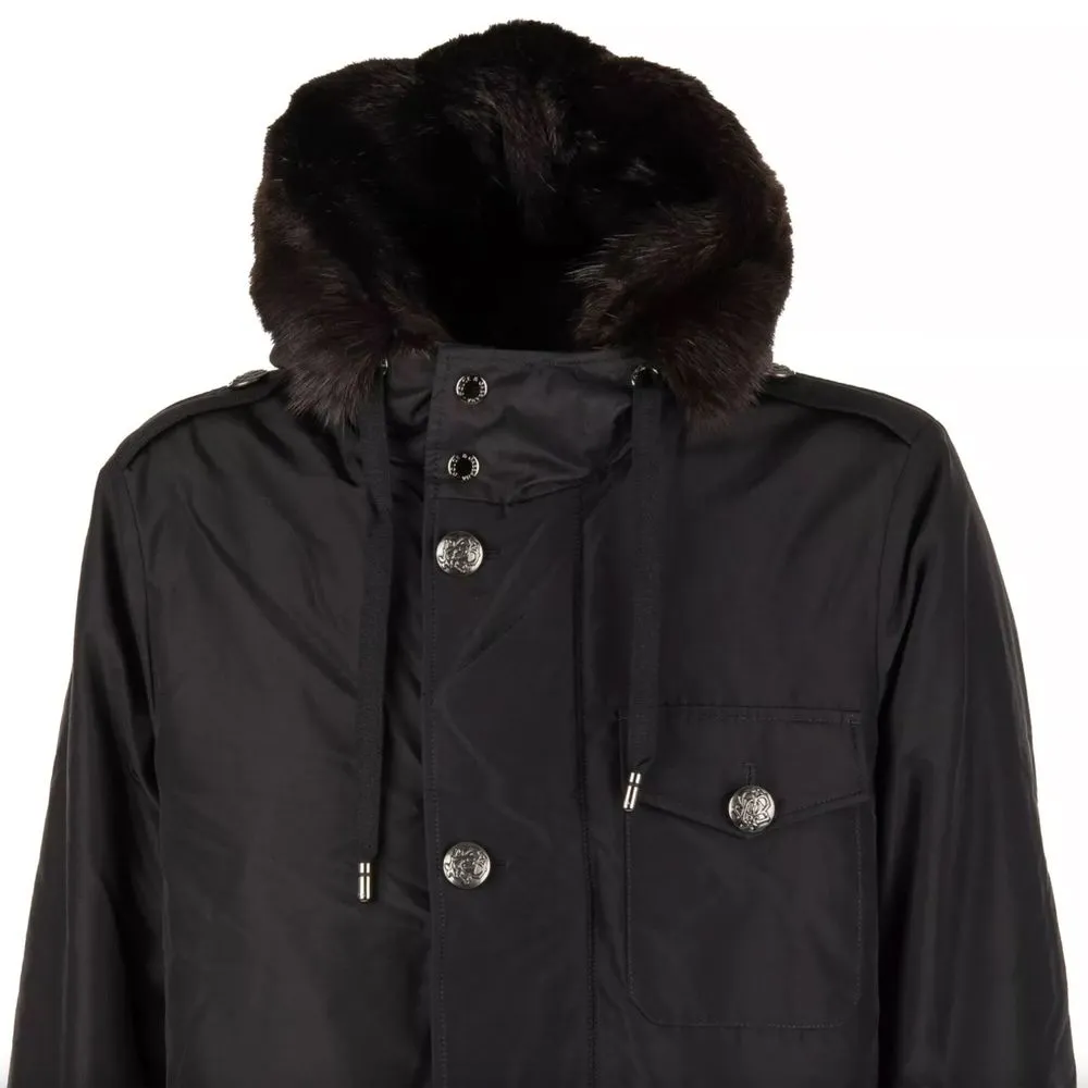 Dolce & Gabbana parka with removable rat mousquet fur lining, three front pockets, and two inside pockets