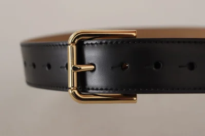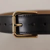 Black Solid Leather Classic Gold Waist Buckle Belt