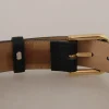 Black Solid Leather Classic Gold Waist Buckle Belt Original price was: $419.00.Current price is: $329.00.