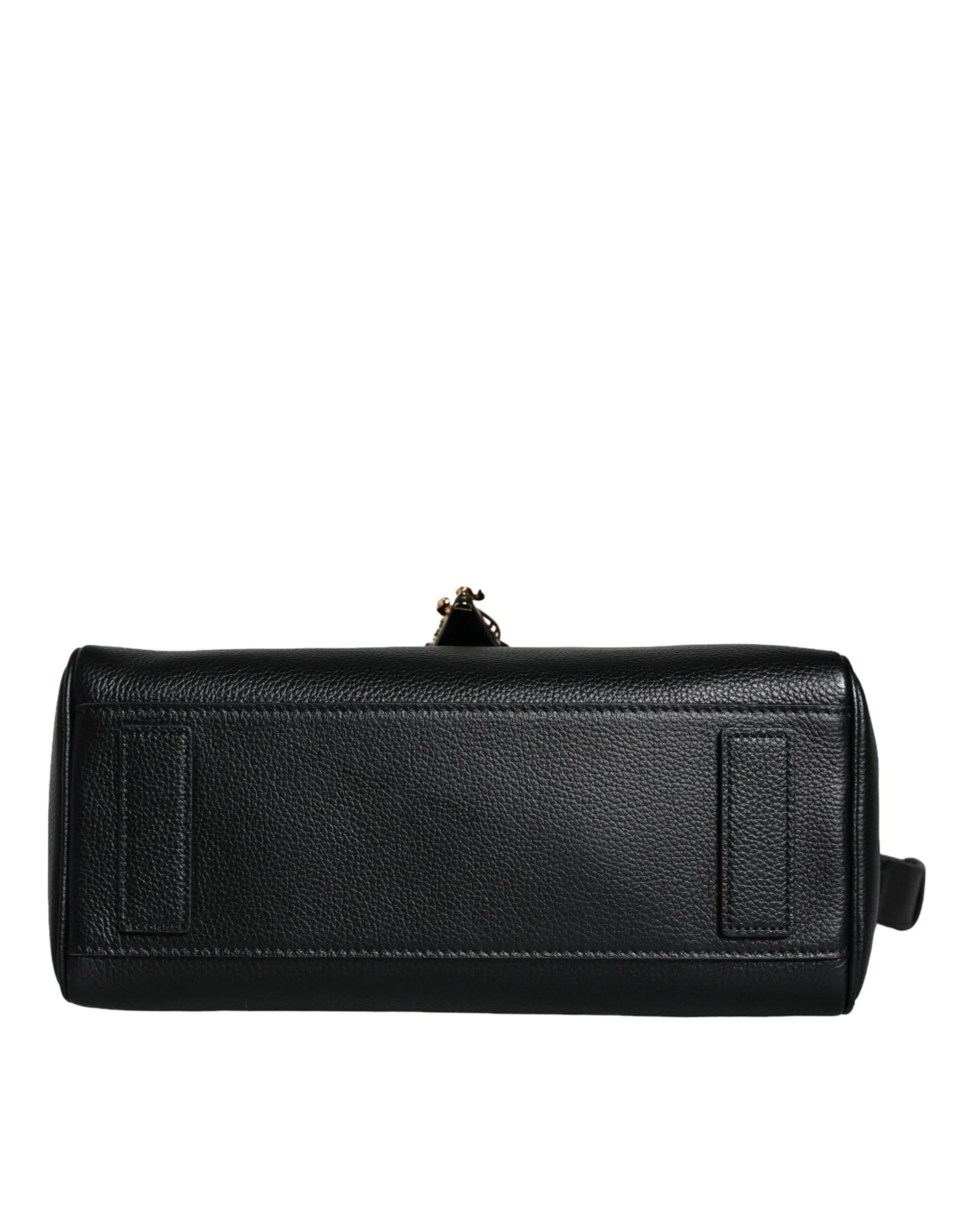 Black Top Handle Grainy Calfskin Leather Crossbody Bag