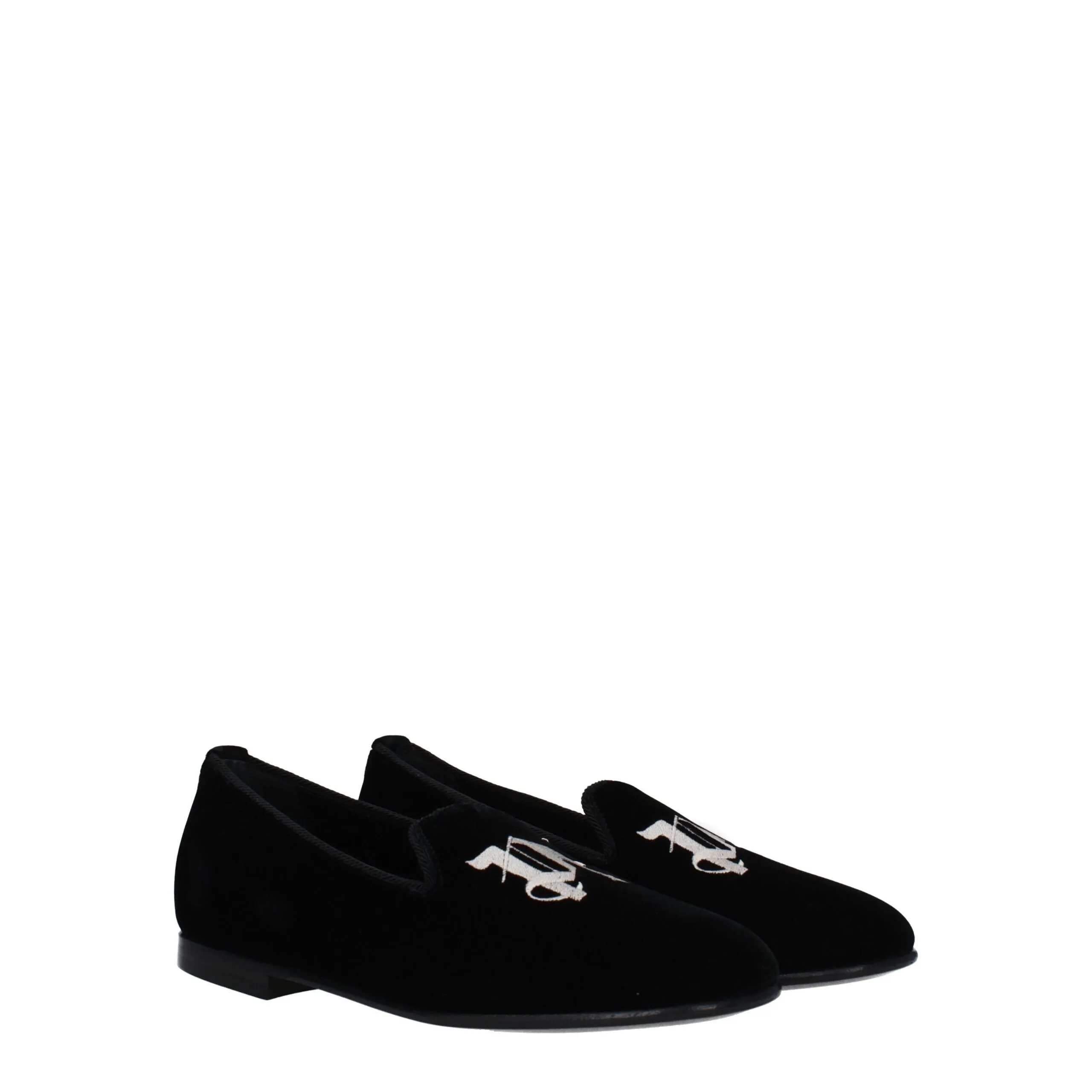The product with MPN PWIG004FAB0011000 and code F79080 velvet in black is a loafers designed by Palm Angels. It has features like front logo.
