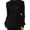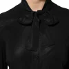 Black Viscose Long Sleeve Tie Neck Blouse Top