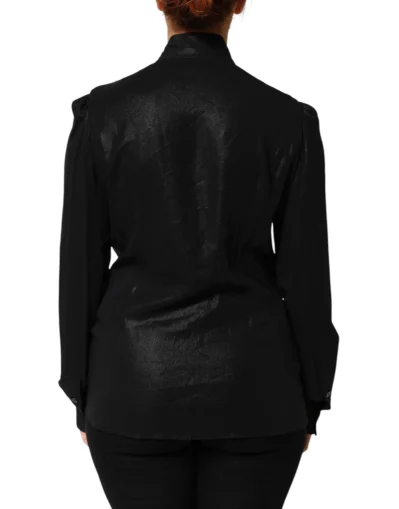 Gorgeous brand new, 100% Authentic Dolce & Gabbana blouse. This sophisticated black long sleeve shirt features a feminine tie-neck bow, button front closure, and a chic silhouette that transitions seamlessly from day to evening.