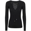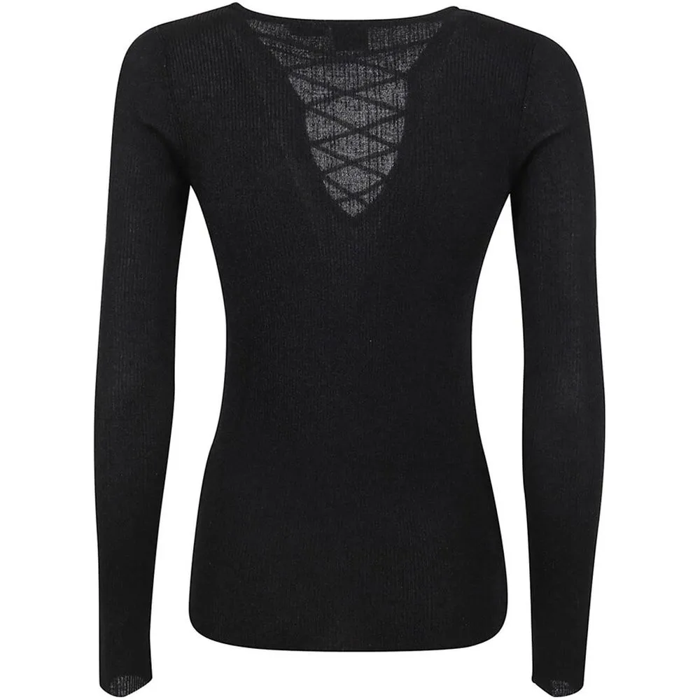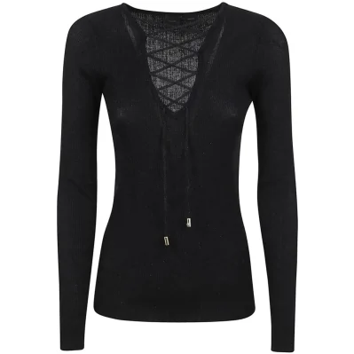 Pinko ribbed sweater in metallic fiber, V-neck with crossed drawstring,... Read More
