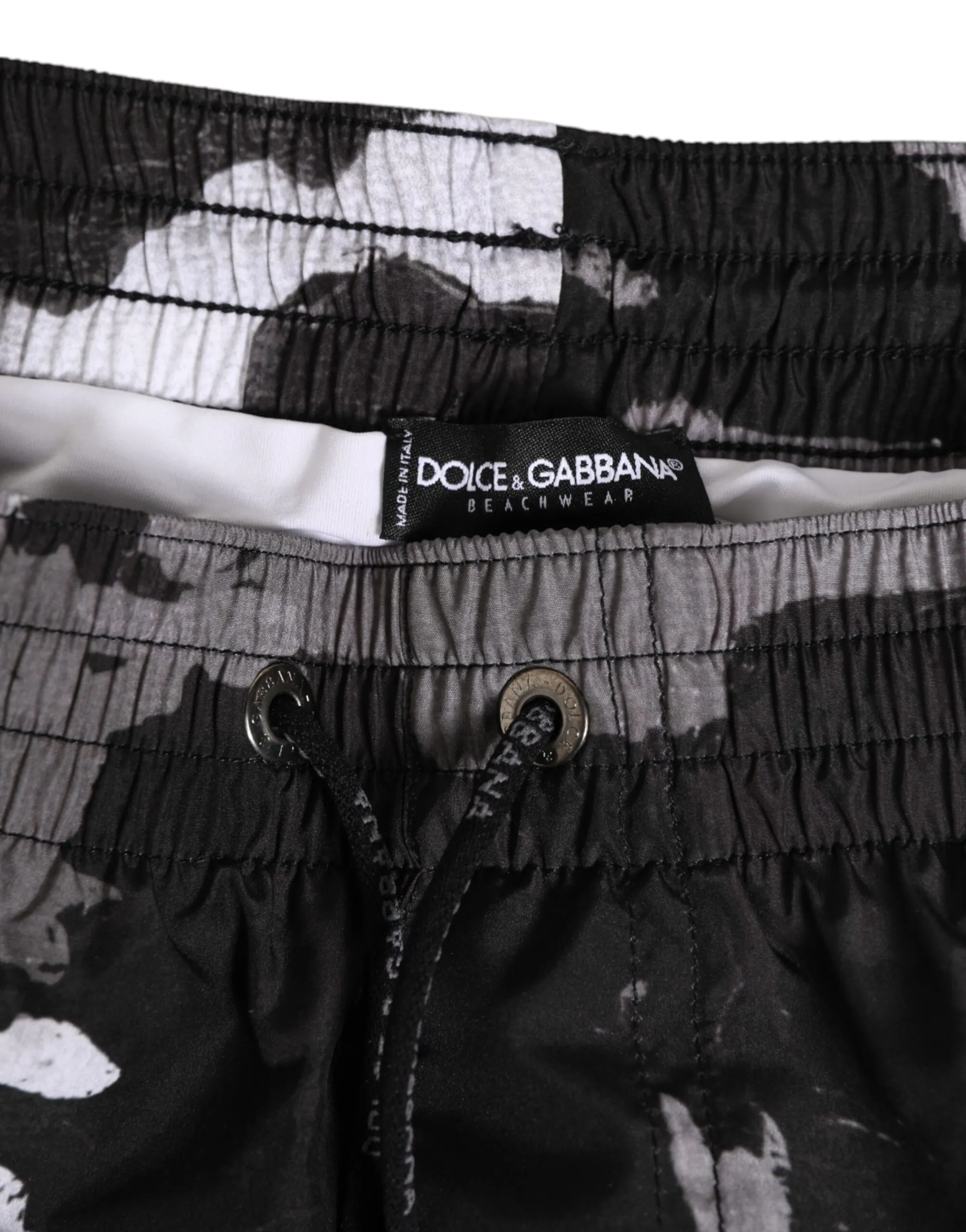 Absolutely stunning, 100% Authentic brand new Dolce & Gabbana swim shorts. Expertly crafted in Italy, these shorts feature a bold black and white camouflage design accented with the iconic DG logo for a statement finish.
