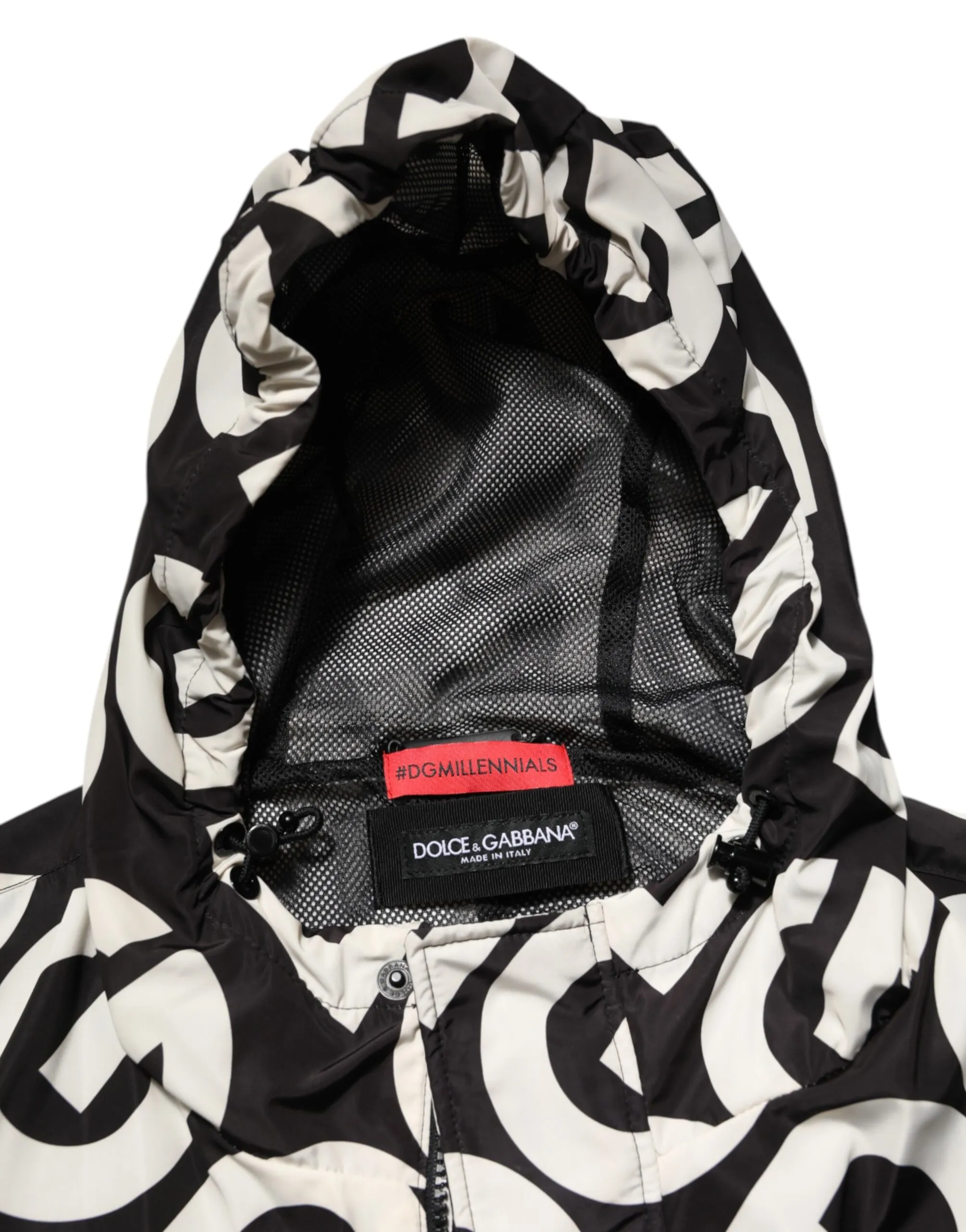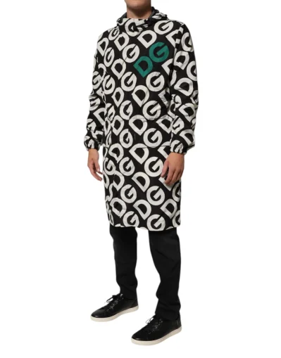 Gorgeous brand new, 100% Authentic Dolce & Gabbana men’s jacket.This stylish hooded coat features a bold all-over DG logo print in black and white with a touch of green detailing. Crafted in Italy with attention to detail, it offers both fashion and comfort.
