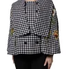 Gorgeous brand new, 100% Authentic Dolce & Gabbana cape is detailed using monochrome patterned wool fabric, with floral appliques enriching its beauty. It has buttoned closure. Style this stunning cape and look polished.