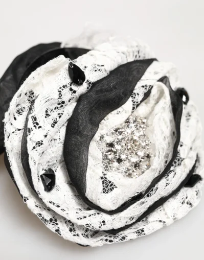 Black White Silk Floral Lace Crystal Accessory Hair Claw