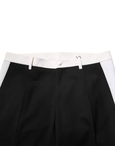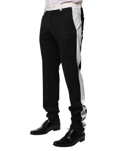 Black White Stripe Wool Men Trouser Pants