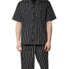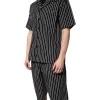 Black White Stripes Cotton Men Pajama Set Sleepwear