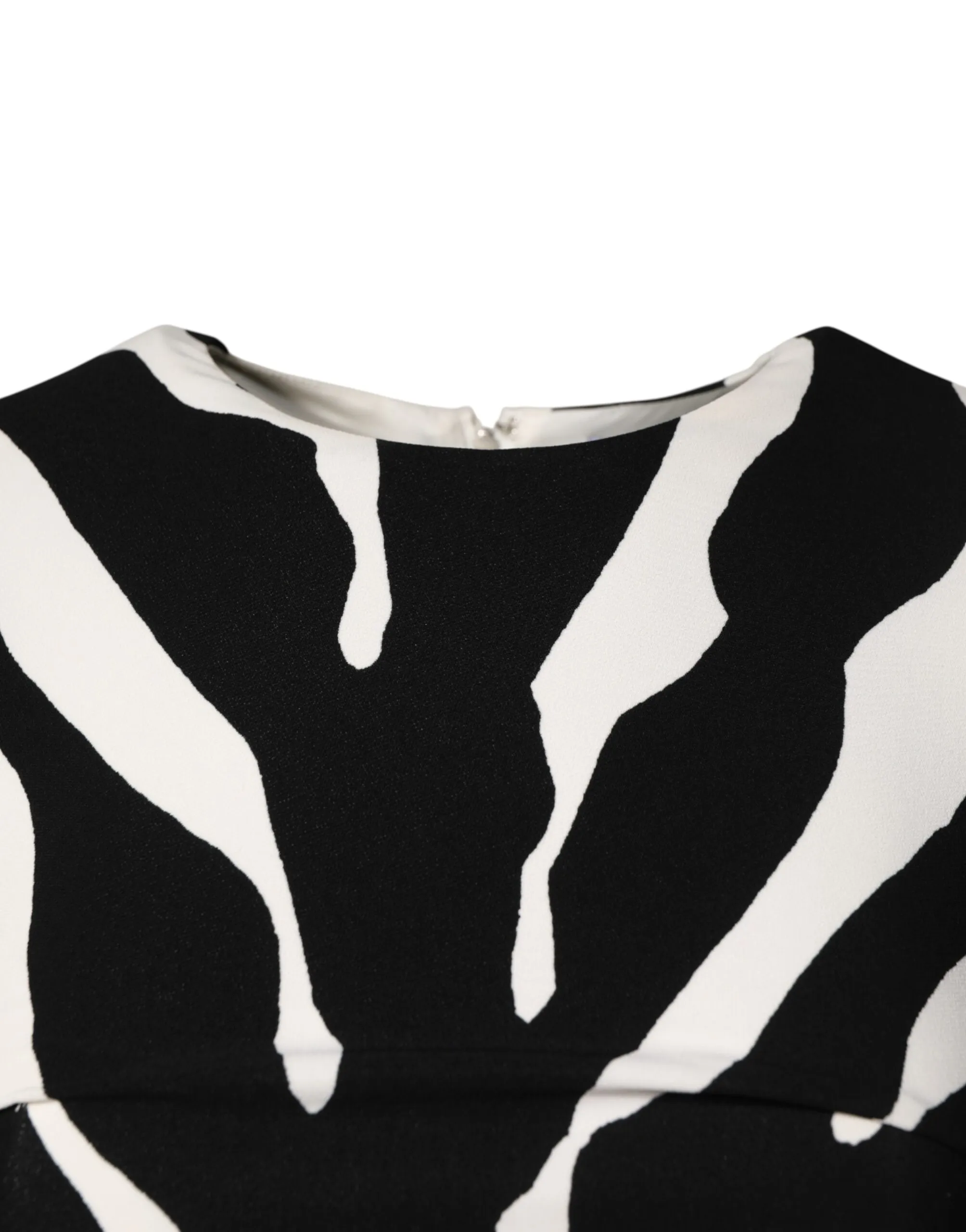 Gorgeous brand new, 100% Authentic Dolce & Gabbana midi sheath dress features a bold black and white zebra print crafted from luxurious silk. Designed with a sleek, form-fitting silhouette, it captures modern elegance with a touch of wild sophistication.