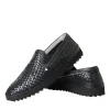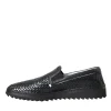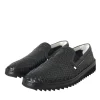 Black Woven Buffalo Leather Men Loafers Shoes