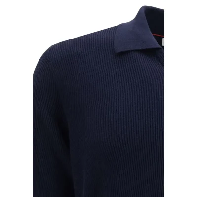 The cotton ribbed Polo Sweater by Brunello Cucinelli features a classic collar and V-neck, adding a touch of understated elegance. The all-over ribbed design lends texture to the fabric, giving the garment a comfortable feel and structured look.
