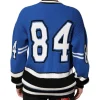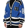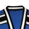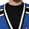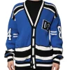 Blue Cotton Logo Patch Ribbed Knit Cardigan Sweater