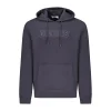 Elevate your streetwear game with this Guess Jeans signature piece. A blend of comfort and style, this long sleeve hooded sweatshirt features a sleek design accented by the iconic Guess Jeans logo. The central pocket adds a touch of utility while ensuring your essentials are close at hand. Crafted from premium cotton and polyester, this blue sweatshirt promises durability and a cozy fit. Perfect for a casual city stroll or a laid-back evening with friends. Make a bold statement in this trendy essential.