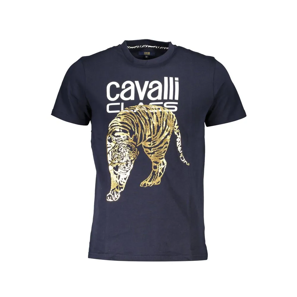 Indulge in the epitome of contemporary chic with Cavalli Class’s striking blue T-shirt. Boasting a bold print that effortlessly captures attention, it’s crafted from sumptuous cotton for luxurious comfort. Emblazoned with the signature logo, this crew neck, short sleeve staple is a testament to masterful Italian design and style. It’s not just a statement piece — it’s an armor of sophistication for the modern man.