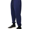 Blue Cotton Mid Waist Jogger Trousers Pants