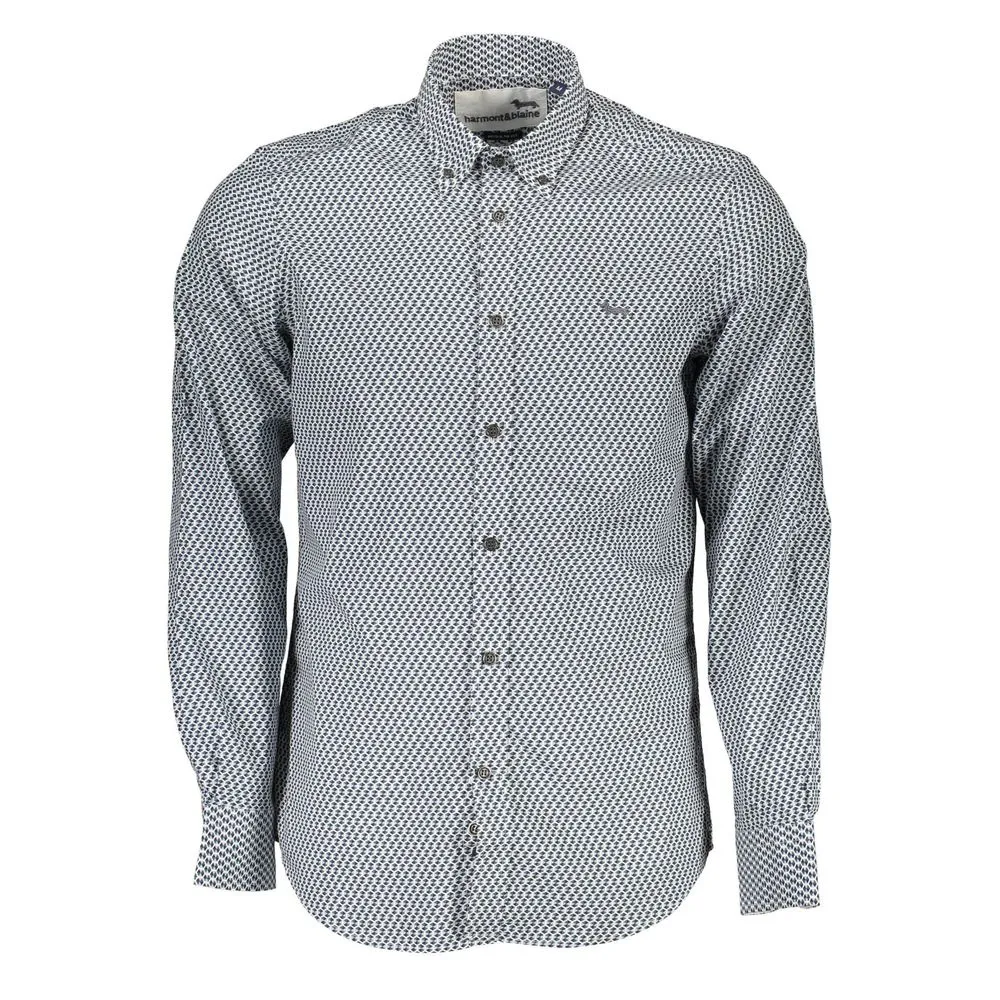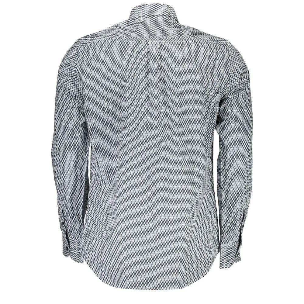 Blue cotton shirt Regular fit Long sleeves Button-down collar 1 button cuffs Contrasting cuffs inside Logo buttons Designed for men Material: 100% Cotton