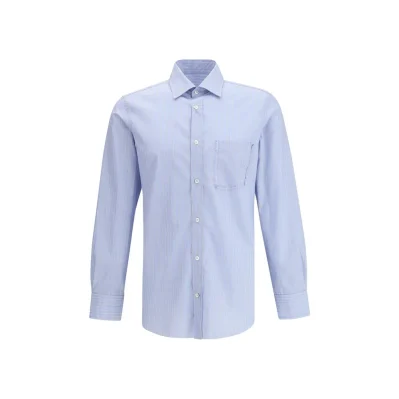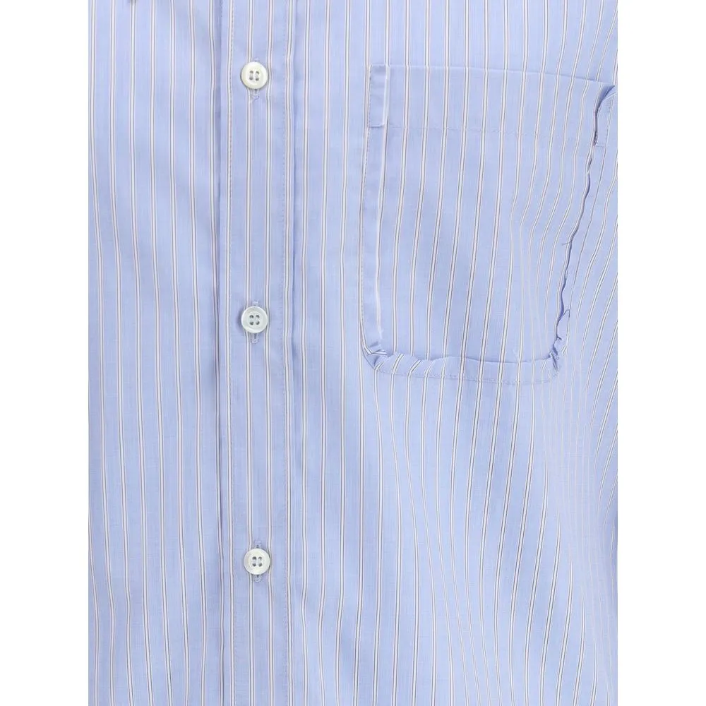 The striped Shirt by Maison Margiela is crafted from pure cotton and stands out for its refined, minimalist design. It features a classic collar, front button closure, and long sleeves with buttoned cuffs. A single chest pocket with defined edges adds a tailored and functional touch, embodying the understated elegance and meticulous craftsmanship that define the maison.