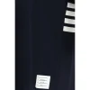 Thom Browne’s Cotton Polo Sweater features a classic collar and buttons on the front for a stylish and practical closure. The brand’s iconic monogram patch applied to the front adds a distinctive touch. The iconic contrasting horizontal bands on the side panels recall the brand’s signature style, creating a unique visual detail. A sophisticated and trendy garment, perfect for a casual-chic look.