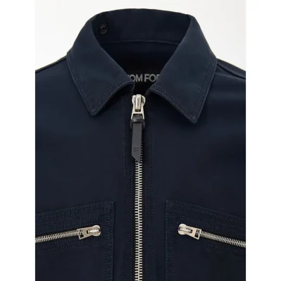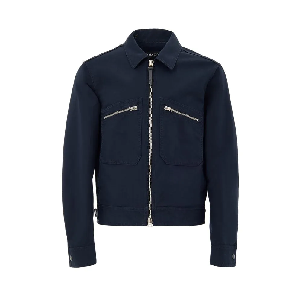 Tom Ford Blue Cotton Blouson Jacket. Front zip fastening, slider with... Read More