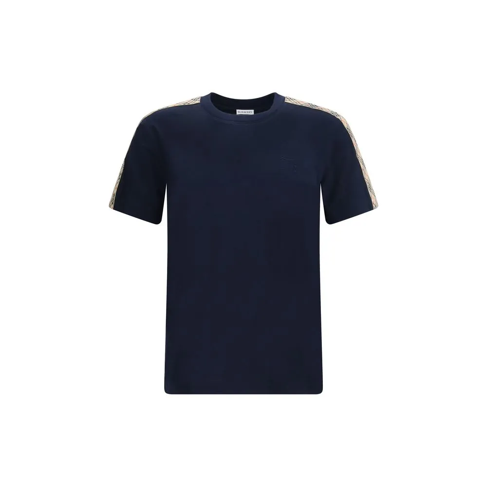 The short-sleeved crew-neck T-shirt by Burberry blends the brand’s iconic heritage with modern refinement. Crafted from soft cotton, it features the embroidered Equestrian Knight Design on the chest and a single Burberry Check stripe running along each shoulder. Timeless yet distinctive, this piece elevates everyday wear with subtle elegance and unmistakable British flair.