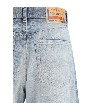 The 1971 D-Sent regular Jeans by Diesel feature a regular fit with straight legs and a high waist, designed with a V-shaped front construction that enhances a feminine yet comfortable silhouette. Crafted from 100% cotton light blue denim inspired by Japanese honeycomb fabrics, the jacquard texture is enriched with stonewash treatments, sprayed bleach effects, and laser technology. Floating threads and natural abrasions complete the distressed finish of this runway-inspired wash. Finished with a button fly.