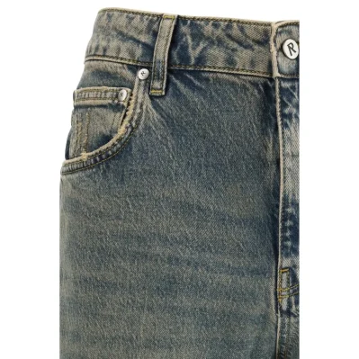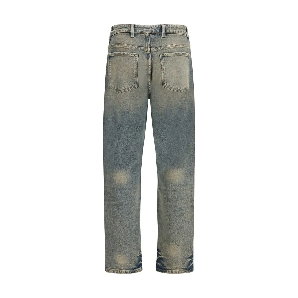 The R2 Straight leg Jeans by Represent are crafted from faded denim featuring a worn-in effect with subtle distressing on the thighs. They have a mid-rise waist, concealed zip and button closure, belt loops, and a five-pocket design. A logo plaque and rear logo detailing complete the piece, adding a refined touch to Represent’s modern and effortless aesthetic.