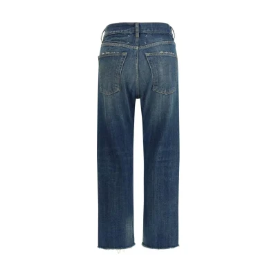 The Straight-leg Denim Jeans by Maison Margiela stand out for their clean line and classic five-pocket construction. Made from washed denim with worn-in details and raw edges, they offer a structured yet comfortable fit that moves naturally with the body. The memory of the jacron patch and the Maison’s iconic four stitches on the back serve as subtle emblems of authenticity and craftsmanship, embodying its conceptual aesthetic.